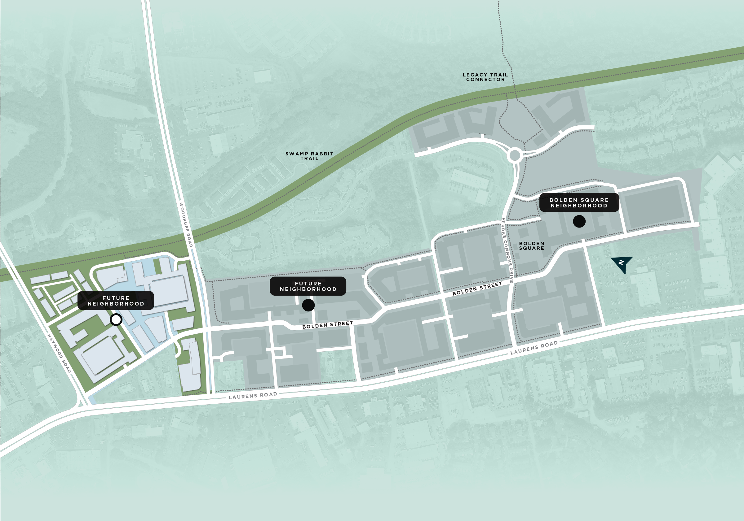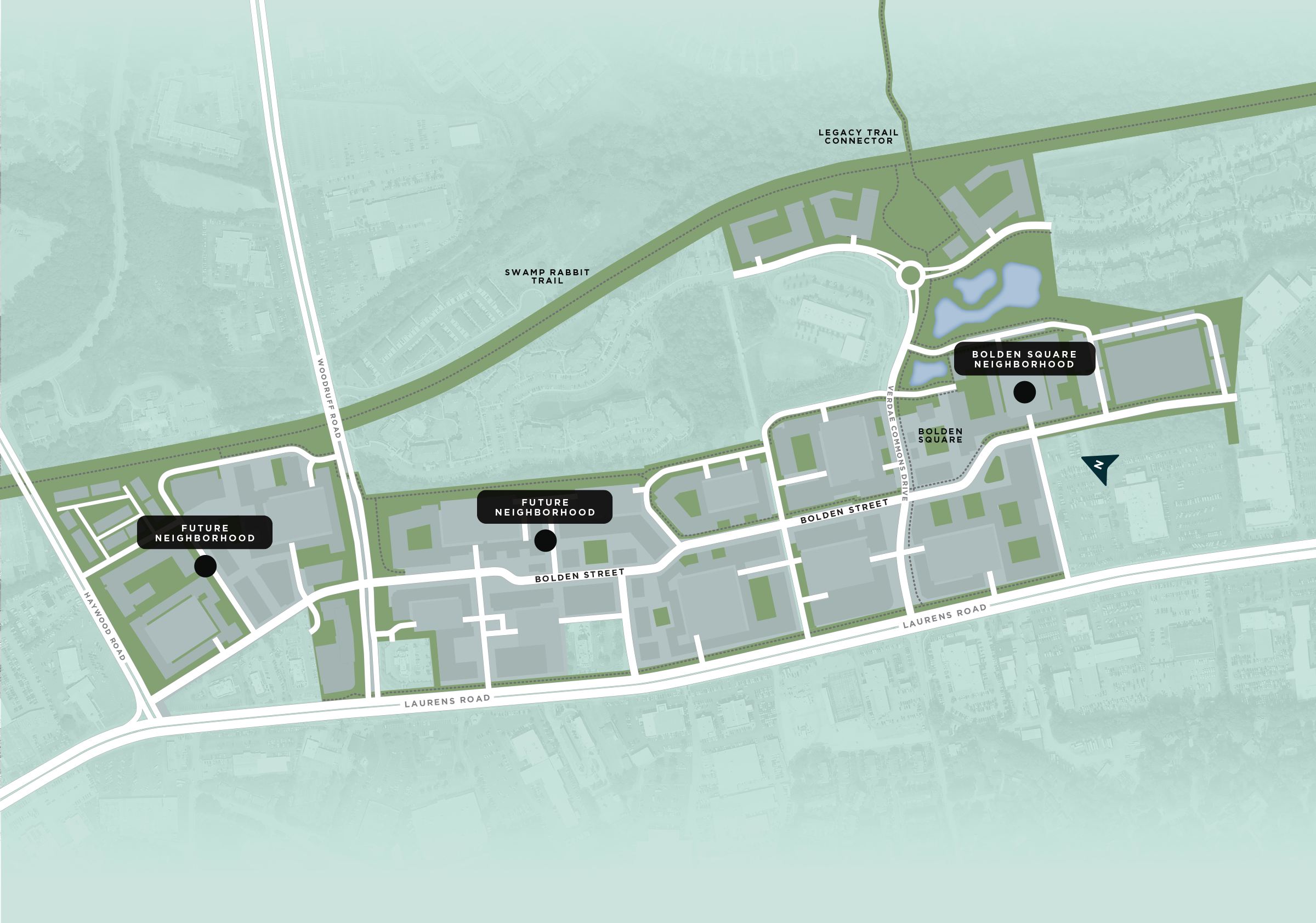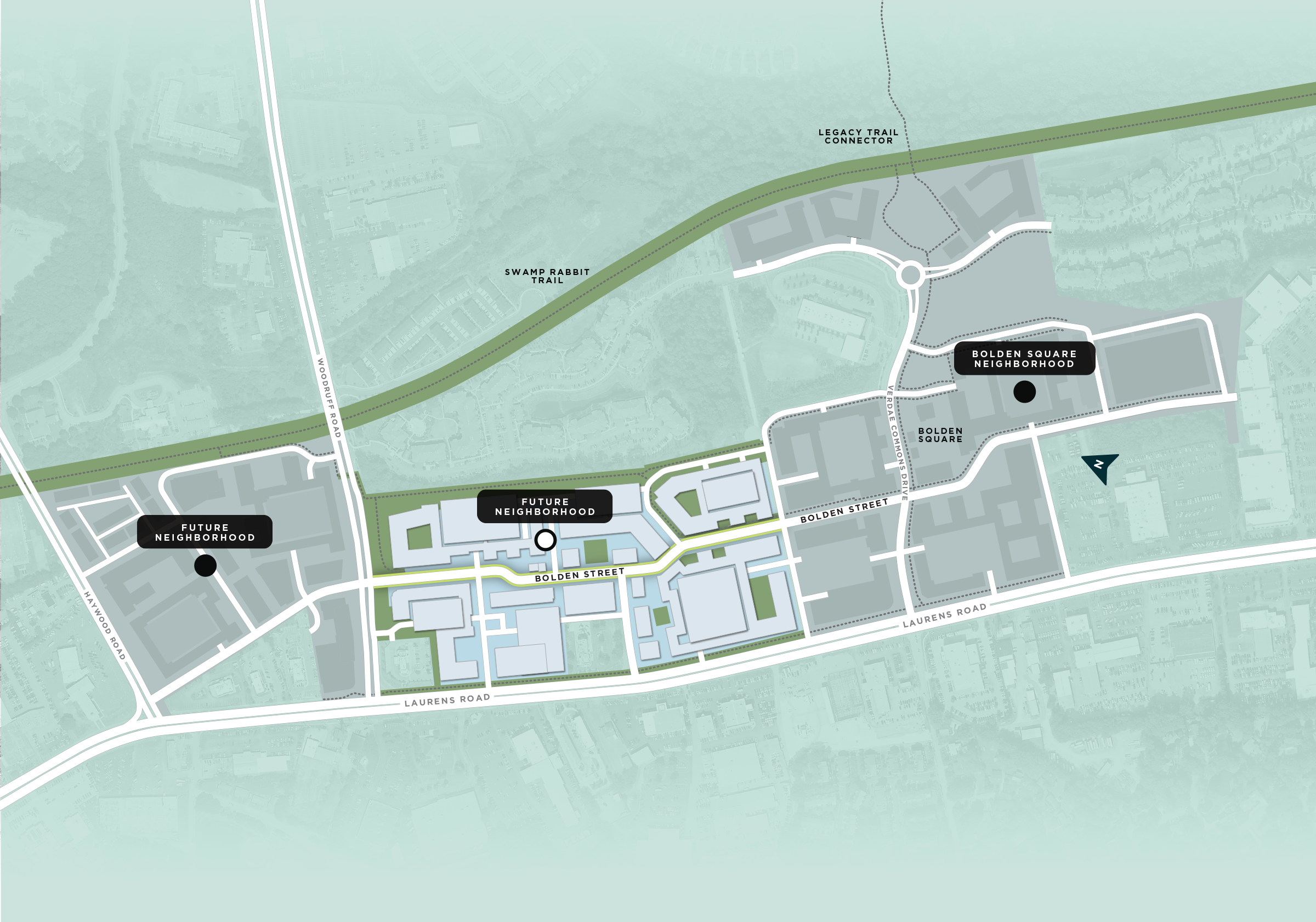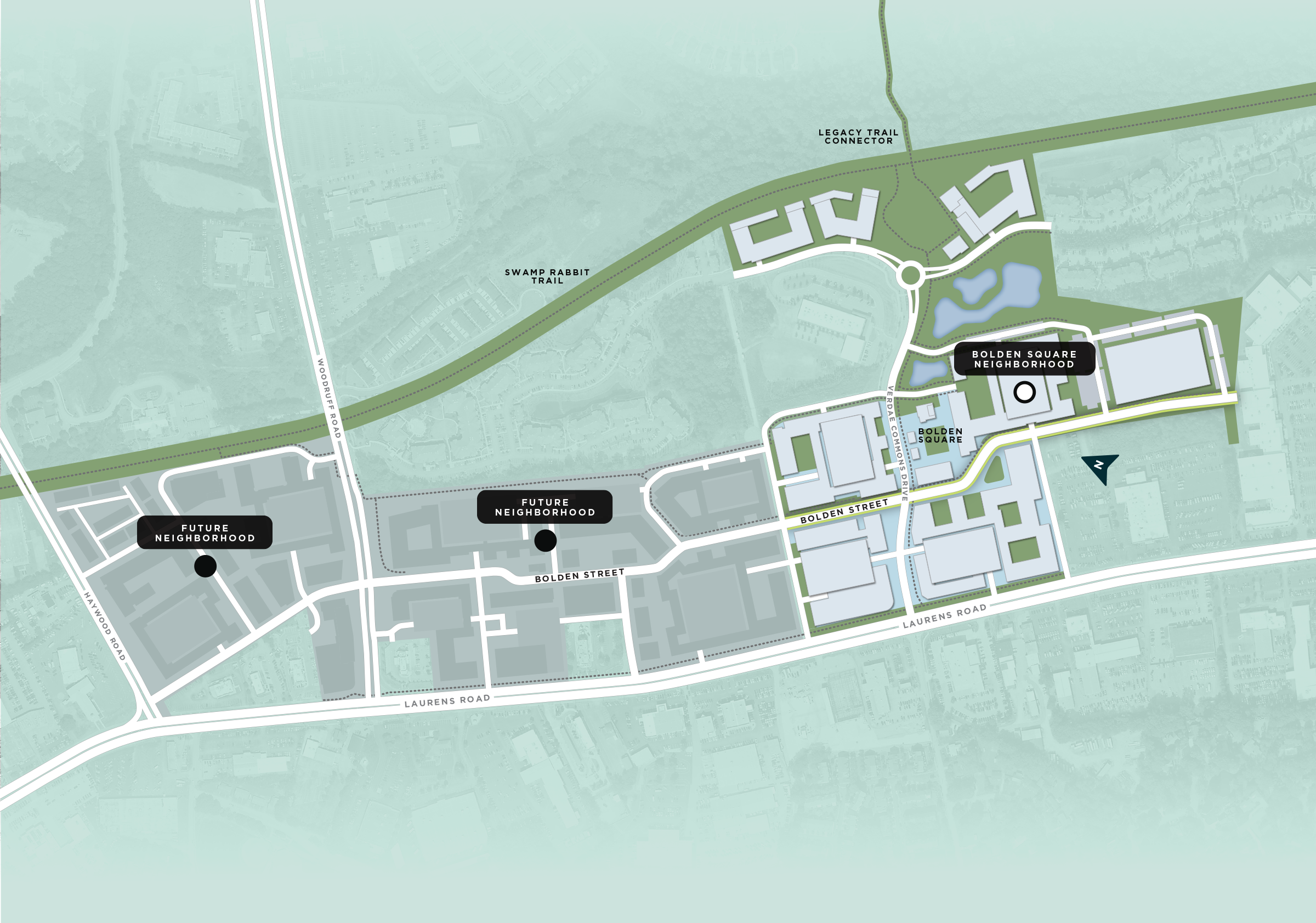 Bolden Street District is ideally situated right on the Swamp Rabbit Trail adjacent to Laurens Road. Minutes from downtown Greenville and the airport. Now ready to transform into a new kind of destination and a new gateway for Greenville.